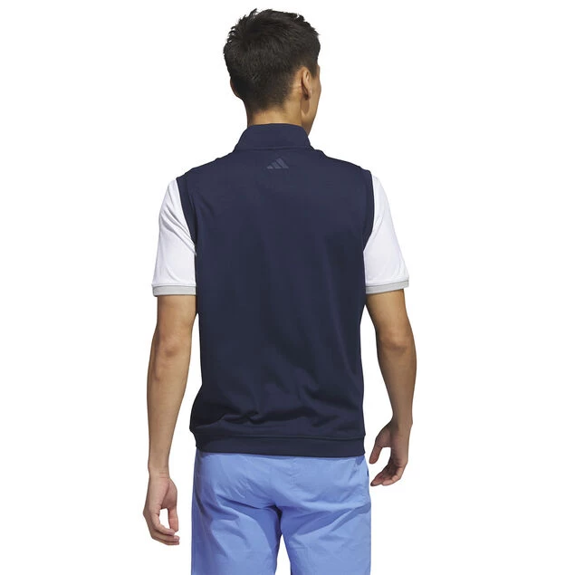 Elevate your style on the course in this adidas Golf vest, made of soft fabric with built-in stretch for full mobility as you play. Designed with a quarter zip opening for adjustability and a stand-up collar to ensure shielding during cool-weather rounds. Made with recycled materials, and at least 70% recycled content, to help end plastic waste.