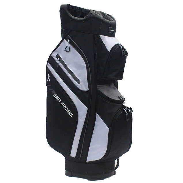 It is also equipped with an integrated cart strap channel to secure your bag to your trolley without blocking essential pocket space. Plus a towel ring, Velcro glove attachment point, umbrella holder, and a matching rain hood for shower protection.