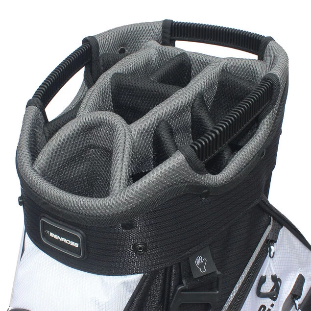 Designed with a 14-way divider top so you have individual spaces for every club used in competition. It also features a front positioned putter pit for use with modern oversize putter grips, plus has built-in top lift handles for better mobility.