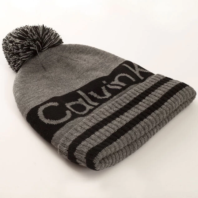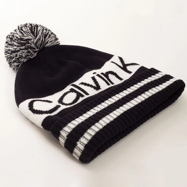 Super cosy varsity style bobble hat is made from warm knitted fabric and lined on the inside with soft fleece fabric. The design features a fold-over ribbed hem, with a contrasting horizontal stripe design with Calvin Klein golf logo text for added appeal. The hat has a top pom to make this classic in appearance and is perfect for the colder days on the golf course.