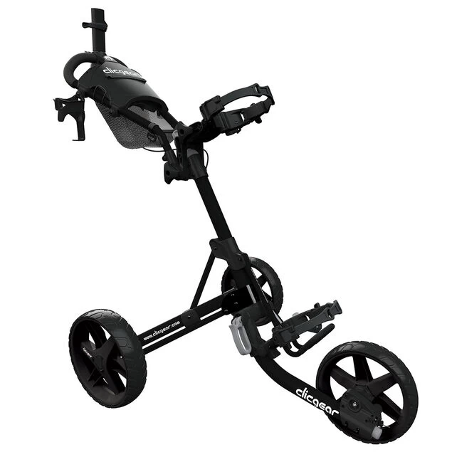 This wonderfully lightweight Clicgear 4.0 trolley offers a full-sized 3-wheel golf pushcart that glides smoothly down the fairway and still folds up incredibly small during transportation. At only 60 x 38 x 33cm when folded, and weighing only 8.45 kg it won’t take over your car boot or garage.