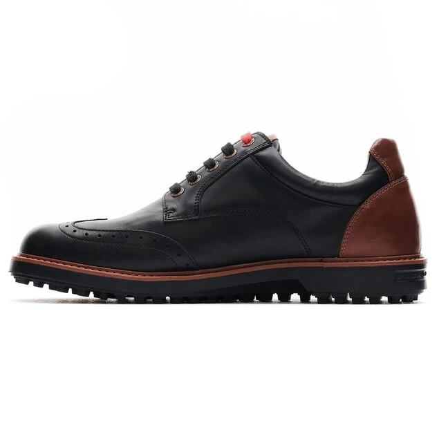 The Eldorado from Duca has all the style and sophistication. Designed with a soft tumbled leather upper with waxed laces, like a dress shoe with all the substance of a technical golf shoe.