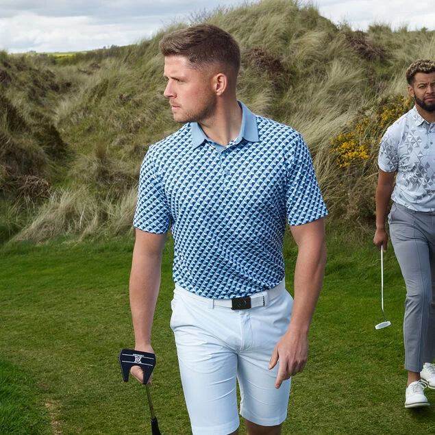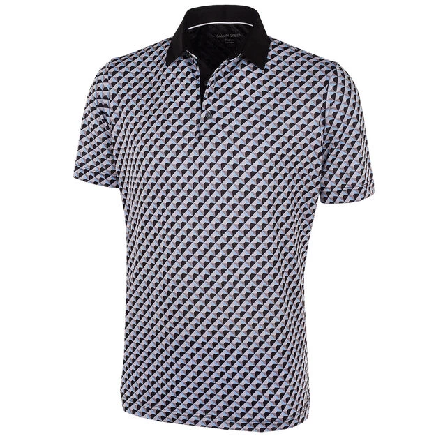 The Mercer polo shirt from Galvin Green is made with VENTIL8™PLUS fabric and highlighted with a multi-coloured pyramid-inspired print for maximum appeal.