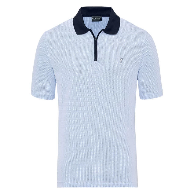 This functional shirt feels comfortably lightweight and breathable when playing golf. Equipped with a moisture management function that transports access perspiration away from the skin to the surface of the fabric, where it quickly evaporates. This enables dry comfort even in high temperatures. The material also provides optimum freedom of movement and a long-lasting good fit. Highlighted with a popular bubble jacquard fabric with a discreet GOLFINO logo embroidered on the chest, a ribbed polo collar and a short zip fastener.