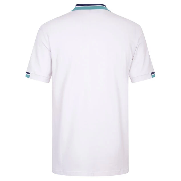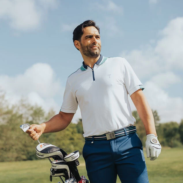 This modern men’s functional golf polo is created in a high-quality cotton blend with high wearing and soft comfort. Sporty golf fashion in a regular fit with stretch element and effective UV protection to keep you free and fresh on the golf course.. Feature stripes on the contrast collar and the sides of the short sleeves underline the fashionable look.