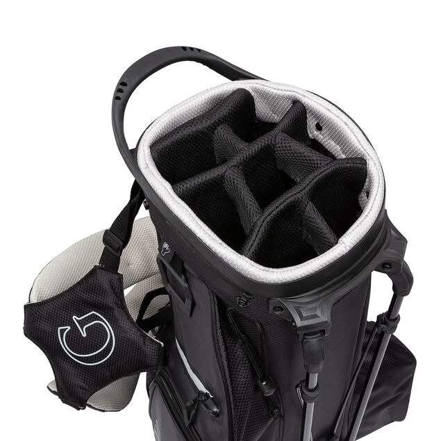 It helps keep your clubs organized due to the 9″, 8-way graphite friendly separator top, with 3 full-length club dividers and a front position putter pit to separate your clubs much more easily. It even features multiple lift points including an ergonomic handle integrated into the top cuff.