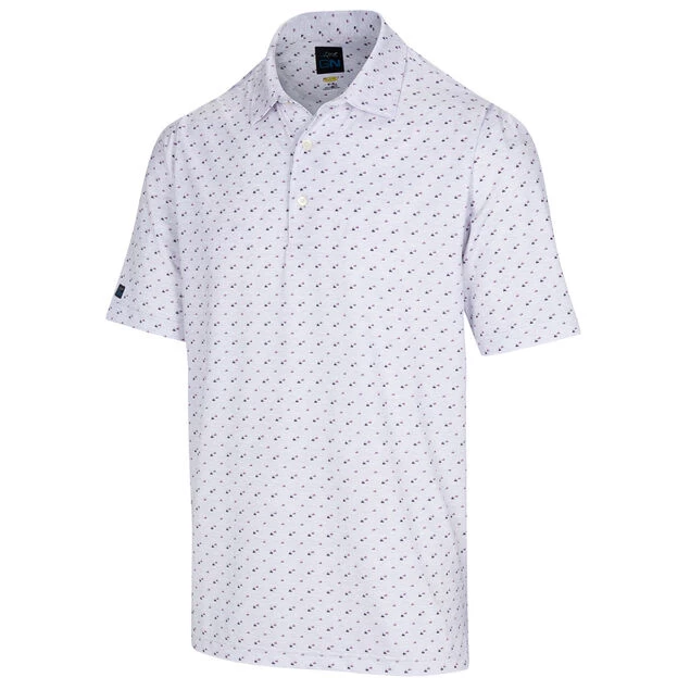 Equipped with Play Dry moisture management to help you stay cool, dry, and comfortable, as you play golf. It’s a technical polo shirt with added stretch to enable you to move freely as you swing the golf club. The design features a collar, a button placket for adjustability, and a heathered mountain peak foulard print, plus a distinctive Greg Norman logo on the right sleeve for added distinction.