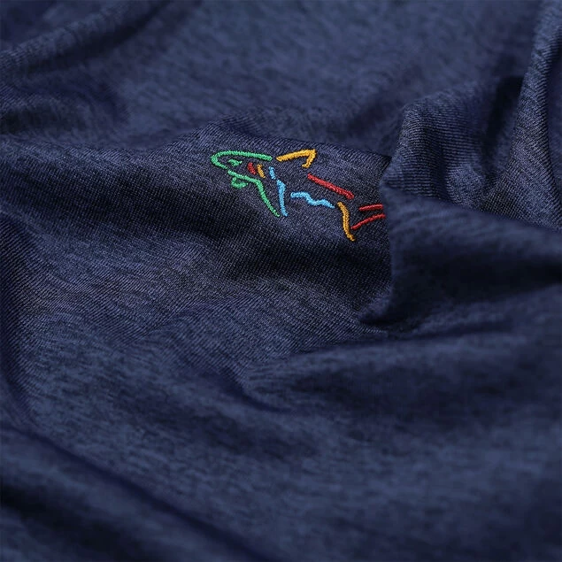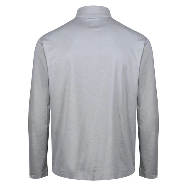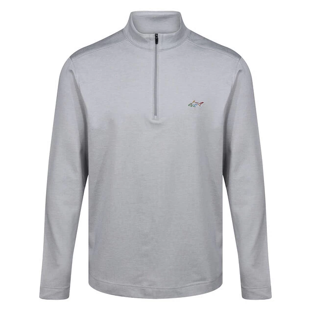 This high-performance mid layer from the Greg Norman collection offers comfort and style as you play the sport of golf. Constructed with a high stretch content for freedom of movement, and a material that is breathable for moisture management. The layer has a textured fabric appearance, a raised collar and a zip placket for easy adjustment when required. The garment is highlighted with a signature multi-coloured shark logo on the left chest for authenticity.
