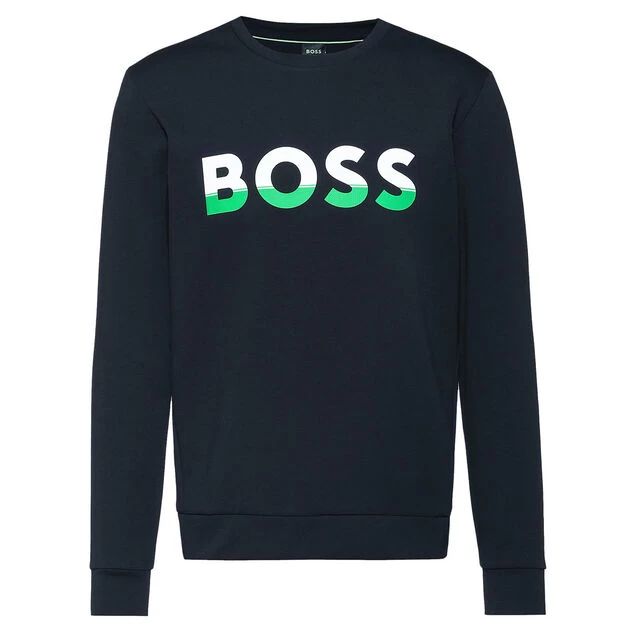 This classic crew-neck sweater from premium brand Hugo Boss is a sporty layer to add to any golfer’s wardrobe. Made from a cotton blend fabric for breathability and warming, and a natural stretch for performance as you play golf. The sweater is highlighted with a High-Impact colour-blocked BOSS logo on the chest for maximum appeal. Regular Fit.