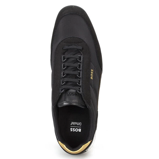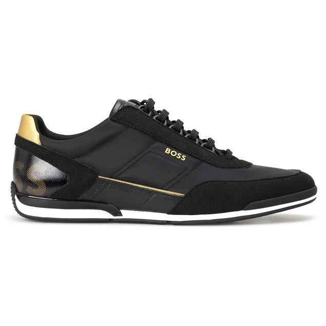 Crafted from a structured nylon and bonded leather, enriched by logo in contrasting colour that match the BOSS logo on the back tab. Equipped with a technical bamboo-charcoal lining material featuring odourless and moisture absorbing properties. The shoes feature a durable rubber sole for performance on most surfaces.