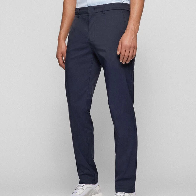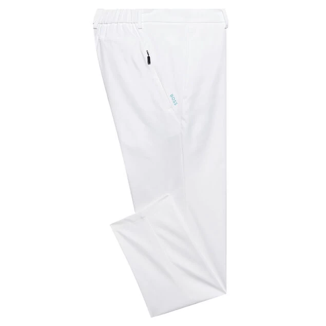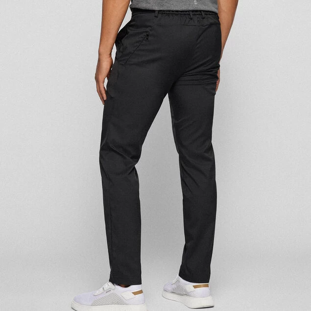 BOSS menswear constructed the trousers with a soft twill fabric with a water-repellent finish, for performance as you play golf. They have a slim-fit leg design and a partially elasticated waistband for enhanced comfort as you perform. The design features front pockets and zip back pockets for additional security, complete with a hook and zip closure, and counter button. Featuring a contrasting BOSS logo at the rear for authenticity.