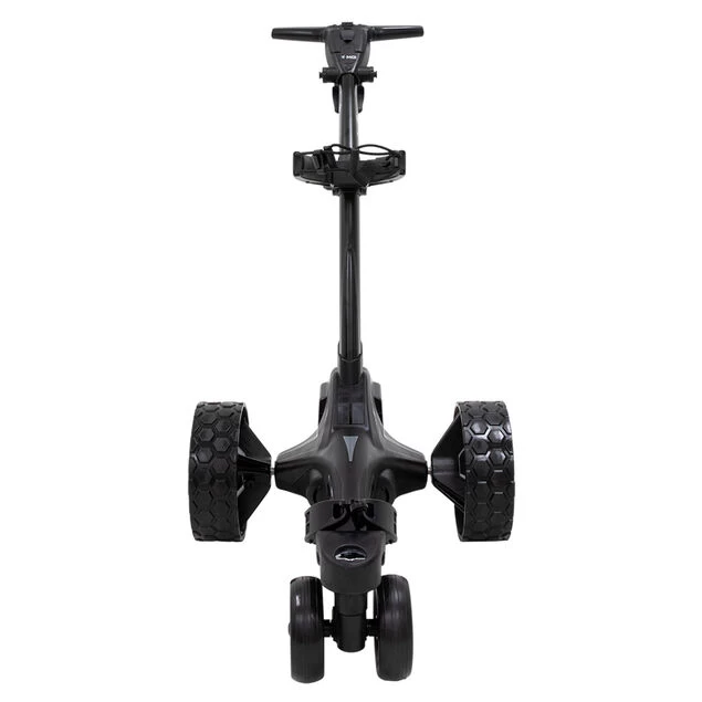 The MGI trolley is powered by an advanced Click & Go high-powered 24v / 380w lithium battery system that can comfortably complete 36 holes if fully charged before use (depending on course and conditions). It powers twin calibrated motors for supreme power and agility. The trolley has an adjustable ergonomic T-Bar handle for more comfort while using manually, fitted with digital electronics, battery indicator and a USB charging point.