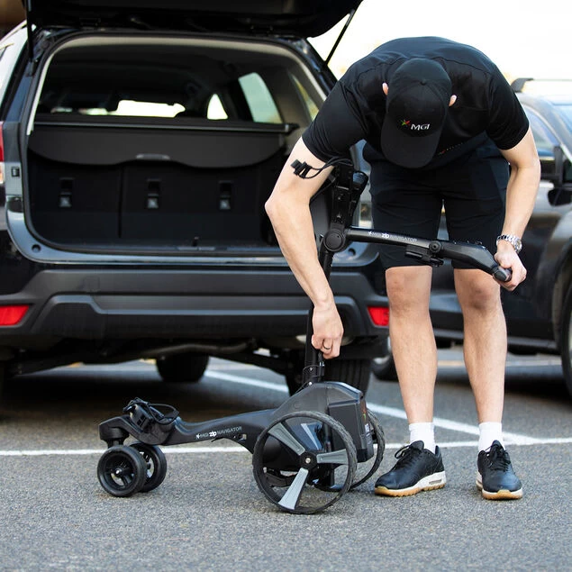 MGI has engineered this trolley to be 12% lighter and 25% smaller which is easier to fold and more compact to place in transportation. It has a 4-wheel design with a swiveling front wheel and a foldable rear wheel for added stability when using the remote control. The trolley also features quick-release rear wheels and are all fitted with all-terrain treads to provide more performance on the turf. It even includes a GPS holder, and storage space and has independent top bag supports and a lower bag strap to secure your bag to the trolley with ease. Folded Dimensions: (INVERTED REAR WHEELS): 27.55″ x 18.5″ x 16.5″ / Weight with Battery: 34.96lbs. Zip Series trollies – 3-year warranty on all models Zip Series batteries – 5-year warranty* Zip Series Charge – 2-year warranty Year 1, 2 & 3 – Full warranty Year 4 & 5 – limited warranty Year 4 – pay 60% for a replacement battery Year 5 – pay 80% for a replacement battery