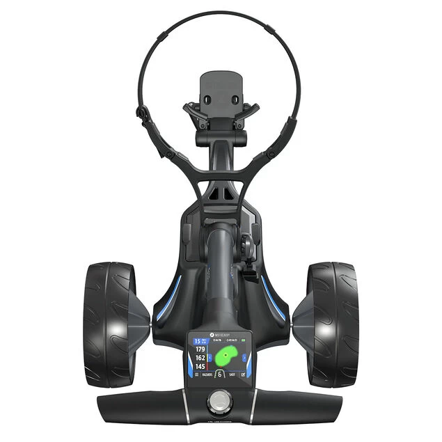 This award-winning trolley offers a fully‑integrated GPS built into a super-responsive 3.5” touchscreen display. Boasting 40,000 pre‑loaded courses with pinpoint accuracy, it can also connect to the Motocaddy GPS app for smartphone alerts and offers built-in WiFi for instant Over‑the‑Air course and system updates.”