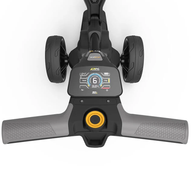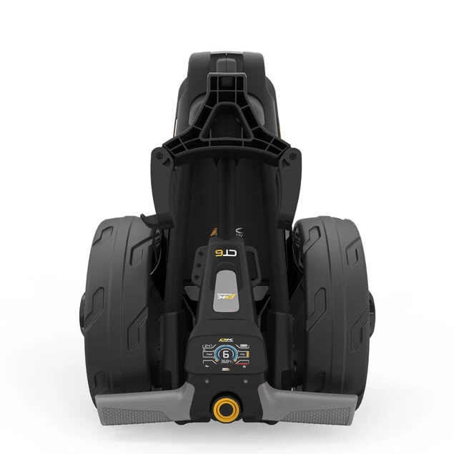 This amazing bit of tech offers you a whole host of features and is highlighted with a new 2.8” mid-size full colour widescreen display. The CT6 allows you to set an automatic distance, letting you send it off to distances of 15, 30, or 45 yards leaving you totally hands-free. Other extremely handy features include the ability to put the cart into standby mode, a power, pause, and resume function, and a digital power gauge along with a battery fuel indicator. It even includes a clock, round timer, speed indicator and you can switch between yards or meters. All easy to read on a totally new backlight control system with anti-tamper dial control. It has a soft-touch ambidextrous handle that adjusts to your perfect height, and USB charging port to charge optional GPS or mobile devices.
