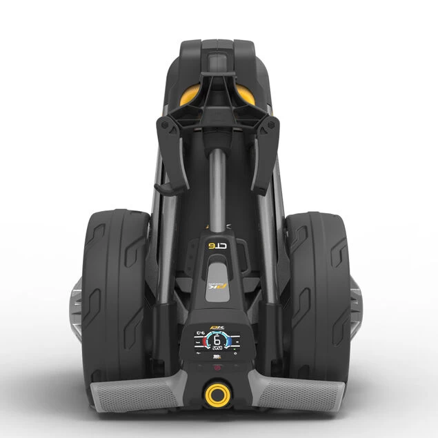 The PowaKaddy CT6 is now the easiest compact folding electric golf cart in its class with an intuitive Simple-2-Fold system that can be folded in seconds. This particular model is equipped with a self-sensing Electronic Braking System (EBS™) that automatically slows the trolley on steep inclines.