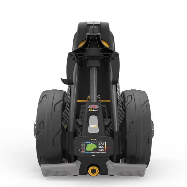 The PowaKaddy CT8 electric golf trolley is now the smallest and most intelligent compact folding cart in its class with an intuitive Simple-2-Fold system that can be folded in seconds. Complete with a fully-integrated premium GPS system and self-sensing Electronic Braking System (EBS) that automatically slows the trolley on steep inclines.