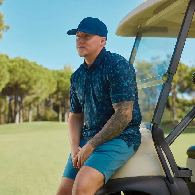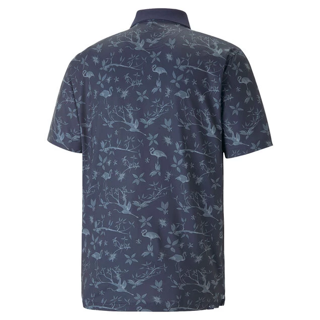 MATTR – cutting-edge Materials, Technology, and Research. This PUMA Golf range of clothing is designed to offer you everything you need for on or off-course activities in all climates. Designed with a 4-way stretch which allows you a full range of motion, it is moisture-wicking and fully breathable to keep you dry and comfortable as you perform. This single jersey fabric polo shirt is highlighted with the flora and fauna of the lagoon that adorns this breathable layer, plus is equipped with high UPF 40+ protection for comfort, style, and safety in the summer sun.