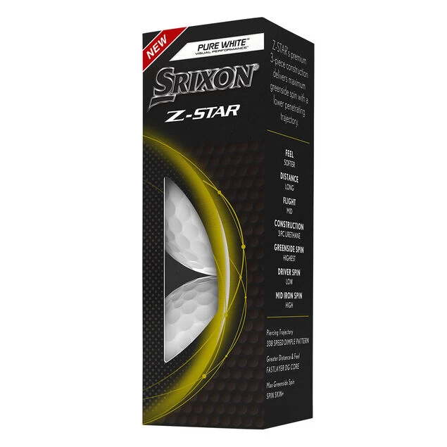 The New Srixon Z-STAR golf ball has a premium 3-piece construction to give leading players complete Tour performance, from tee to green. The Z-Star provides maximum greenside spin for unmatched control and stopping power.