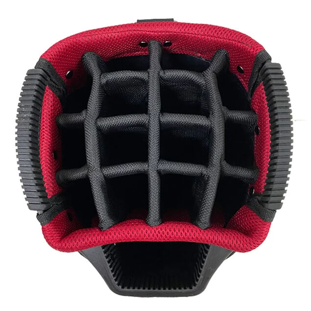 This modern cart bag has a 14-way divider system and is constructed with waterproof materials to keep your equipment nice and dry as you play golf.