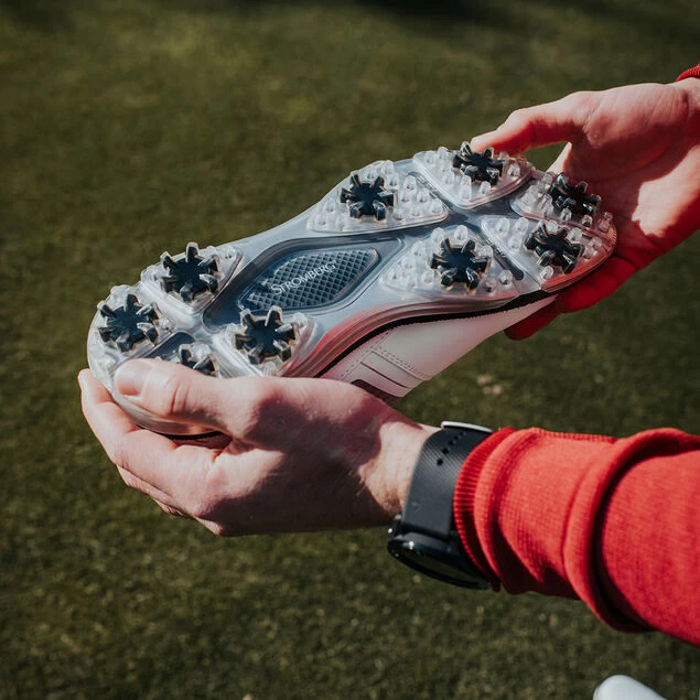 This high-performing golf shoe offers waterproof protection, it`s sleek and stylish with dynamic traction to provide on-course versatility.