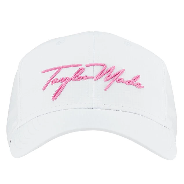 This TaylorMade cap has a contemporary style that incorporates a newly scripted TaylorMade logo with a flowing cursive font cleanly embroidered onto the front of the panelling. Made with performance fabric with a traditional structured fit that has a rear strap for adjustment. The golf cap also features a moisture-wicking sweatband to keep you dry and comfortable playing the sport of golf.