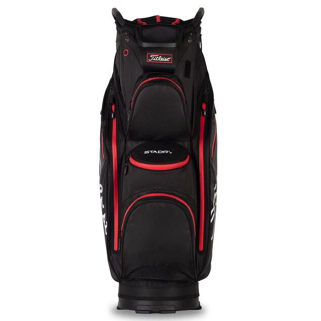 This modern golf cart bag has been constructed with abrasion-resistant materials for long-lasting durability, along with StaDry waterproof technology and seam-sealed waterproof zips to ensure your precious golf gear is protected.