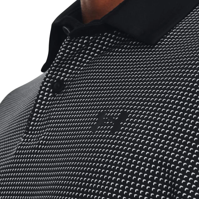 This polo shirt has been constructed with moisture-wicking material that dries really fast, with anti-odour technology for performance as you play. It has a stretch fabric construction to ensure you can move freely and has a loose fit, perfect during any athletic movements associated with the golf swing. The design features an all-over print, and a button placket, highlighted with Under Amour logos front and rear.