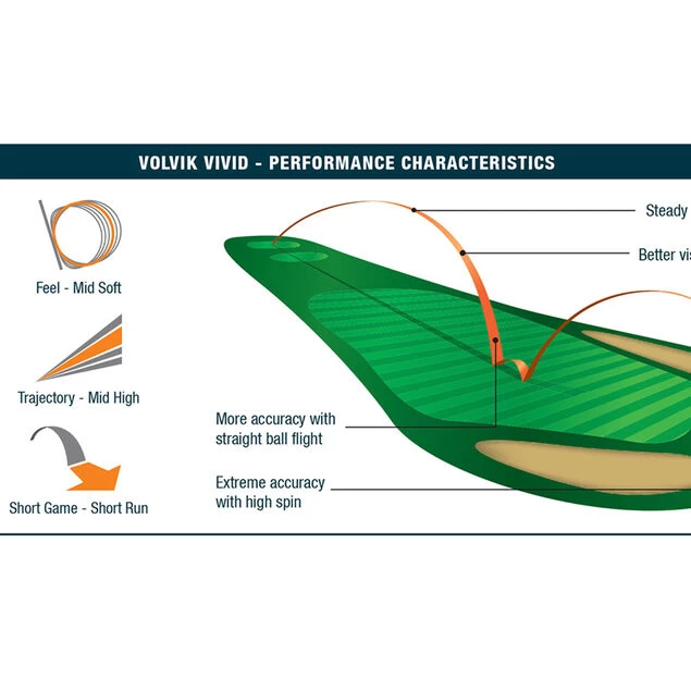 The Volvik Vivid golf ball offers high visibility and performance, with a stylish Matte finish. This is the worlds first ever matte finish golf ball and provides better visibility to help you locate your golf ball much more easily. The ball has been formulated to add more distance for slower swing speeds, and provides a more stable mid-high ball trajectory ball flight for increased accuracy off the tee. For more control, the ball has a soft feel for improved feedback and has high spin for extreme short game accuracy.